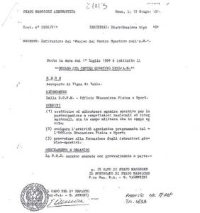 Nel 1964 lo Stato Maggiore Aeronautica decretò la costituzione, di un nuovo Reparto che rispondesse alla necessità di coordinare tutta l’attività sportiva agonistica, fino ad allora praticata in maniera disorganica e amatoriale. Dopo un’attenta analisi l’antico idroscalo di Vigna di Valle fu scelto come sede del nuovo ente in quanto racchiudeva tutti i requisiti per poter ospitare gli atleti e disporre degli impianti necessari ad un centro sportivo di alto livello.Furono necessari dei lavori di adeguamento delle strutture esistenti alle esigenze tecnico-logistiche del nuovo reparto insediato: il campo per le manovre e la sperimentazione dei sistemi di atterraggio automatico dei dirigibili fece posto alla pista di atletica, mentre la grande aviorimessa Saporiti, inizialmente adibita alla manutenzione degli idrovolanti del Soccorso Aereo, fu ristrutturata internamente per ospitare un campo di basket coperto con due tribune laterali per il pubblico. Fra le prime discipline ospitate a Vigna di Valle oltre agli sport “nobili” come la Scherma, già nata all’interno di Palazzo Aeronautica fin dal 1947, ricordiamo anche la regina delle discipline, l’Atletica Leggera, e quelle minori come l’Hockey su prato e il Pattinaggio a Rotelle che comunque hanno contribuito in maniera sostanziale ad alimentare il palmares del CSAM, sempre in continua crescita in termini di titoli nazionali e internazionali.