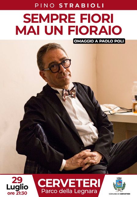 Una serata raffinata, di qualità, con un artista completo, elegante. Sabato 29 luglio alle ore 21:30 il Parco della Legnara a Cerveteri, nell’ambito degli spettacoli serali dell’Estate Caerite 2023, ospiterà Pino Strabioli, con lo spettacolo “Sempre fiori, mai un fioraio”, liberamente tratto dal libro da Rizzoli “Sempre fiori, mai un fioraio: Ricordi a tavola” di Paolo Poli, raccolta di ricordi e pensieri del grande attore, regista teatrale e cantante italiano scomparso nel 2016. Ingresso gratuito.