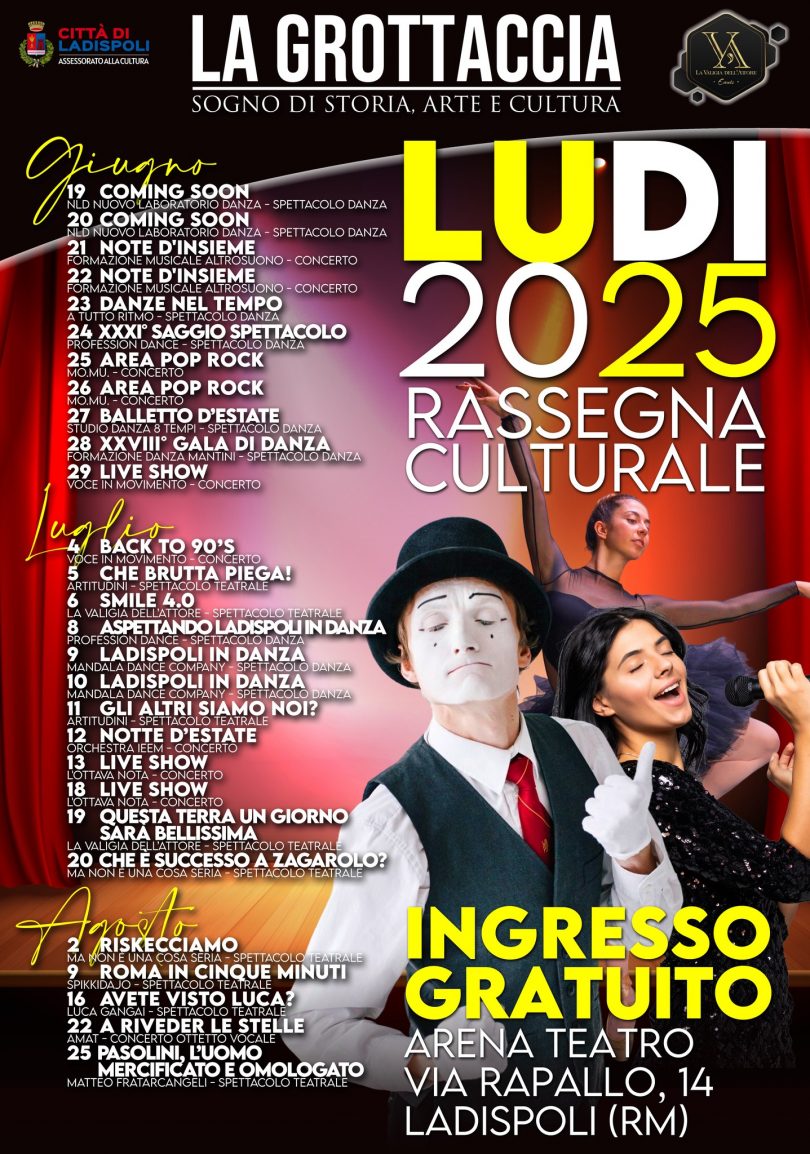Prenderà il via oggi, giovedì 19 giugno, la nuova edizione della rassegna culturale estiva presso l’area della Grottaccia in via Rapallo a Ladispoli, che accompagnerà cittadini e visitatori fino alla fine di agosto con serate di musica, danza, teatro e spettacolo dal vivo.