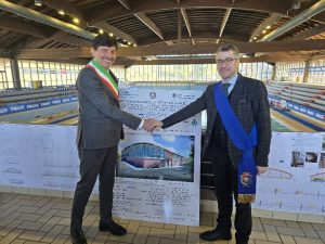 A Civitavecchia è partito il cantiere per i lavori di efficientamento energetico allo Stadio del Nuoto “Marco Galli”. Alla cerimonia inaugurale il Sindaco di Civitavecchia, Marco Piendibene, ha accolto il Vicesindaco di Città metropolitana di Roma Capitale Pierluigi Sanna, (nella foto in basso) assieme al Direttore del Dipartimento Attuazione del PNRR, fondi europei, supporto ai Comuni per lo sviluppo economico e sociale Stefano Carta, di fronte a una platea di cittadini, amministratori locali e autorità civili e militari del territorio.