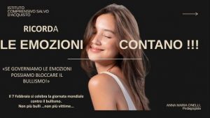 Così, ho accolto di buon grado l’idea di incontrare i bambini delle classi quarte e quinte di scuola primaria frequentanti la sede centrale dell’Istituto Comprensivo Salvo d’Acquisto e del plesso distaccato “Pagliuca-Due Casette”. È stata una grandissima gioia tornare in veste di pedagogista, delegata dal Collegio dei Docenti, a parlare di emozioni in questa stessa scuola da me diretta quando era unicamente Scuola Media. È stata una soddisfazione enorme trovarla “cresciuta”in tutti i sensi ed essere stata gioiosamente accolta e presentata con tanta stima e affetto dalla prof.ssa Paola Olmi, dal professor Gianluca Vannutelli, dall’insegnante Milena Russo, responsabile del team antibullismo.