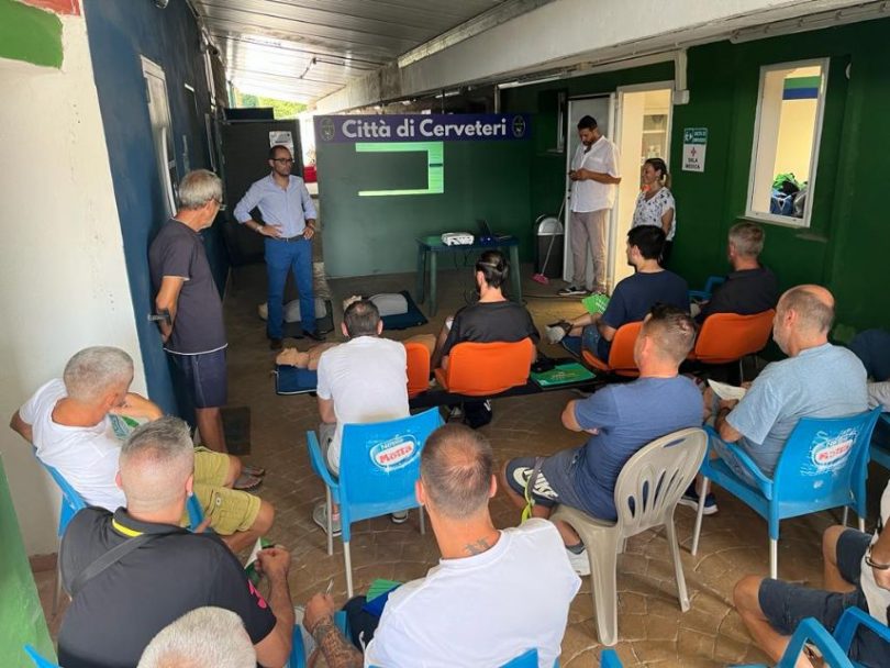 Allenatori e istruttori da oggi sapranno utilizzare il defibrillatore al campo Galli di Cerveteri. La società verdeazzurra ha tenuto un corso per istruire i tecnici ad intervenire nel caso in cui ce ne fosse bisogno. Un passo in avanti, che lascia capire come il club ci tenga molto alla salute dei giocatori e allo stato d’animo dei genitori, che lasciano i figli al campo per gli allenamenti. Grazie al dottor Bruno Migliore, che ha tenuto il corso con i suoi collaboratori, gli allenatori hanno potuto apprendere le nozioni per il primo intervento sull’uso del defibrillatore. Il presidente Andrea Lupi, infatti, voleva che si svolgesse una giornata di approfondimento sull’utilizzo dell’apparecchio che in molti casi salve le vite.