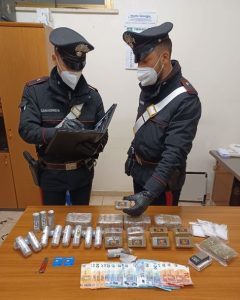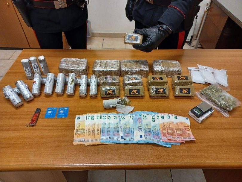 L’indagato è stato sorpreso, nel tardo pomeriggio di lunedì, su un terrazzo condominiale, con atteggiamento estremamente guardingo, mentre prelevava dei panetti di hashish da un paio di borsoni per poi riporli in una borsa più piccola. Bloccato dopo pochi istanti, ha cercato di disfarsi dell’involucro gettandolo nel giardino condominiale; i Carabinieri lo hanno immediatamente recuperato ed all’interno hanno rinvenuto 3 panetti, un bilancino elettronico di precisione, un coltello a serramanico e materiale vario per il confezionamento delle dosi. I Carabinieri hanno poi recuperato anche i due borsoni, rinvenendovi all’interno ulteriore stupefacente della medesima tipologia, per oltre 4,7 chilogrammi. Nel corso di una perquisizione presso la sua abitazione, i Carabinieri hanno rinvenuto 50 g di stupefacente tipo marijuana ed ulteriore materiale per il confezionamento delle dosi.