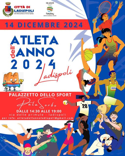 A Ladispoli sabato 14 dicembre presso il Palasorbo, dalle 14:30 alle 19:00, torna uno degli eventi più attesi: “Atleta dell’anno 2024 città di Ladispoli”.