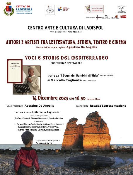 Giovedì 14 Dicembre alle ore 16.30 con ingresso libero, al Centro di Arte e Cultura di Ladispoli sarà realizzato il terzo incontro del progetto culturale “Autori e Artisti tra Letteratura, Storia, Teatro e Cinema” ideato dall’attore e regista Agostino De Angelis, promosso dal Comune di Ladispoli, in collaborazione con la Biblioteca Comunale “Peppino Impastato” e organizzato dall’Associazione Culturale ArchéoTheatron.
