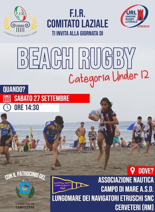 Una giornata fuori dall’ordinario presso l’Associazione nautica Campo di Mare asd, promossa dalla Federazione Italiana Rugby e organizzata dalla dirigenza della U.R.L. Unione Rugby Litorale Etrusco.Il meteo, tanto sole e il mare bellissimo, ha favorito e resa ancor più bella l’iniziativa; in spiaggia è stato allestito un campo da rugby ove si sono cimentati, alla presenza di tanti genitori, i ragazzi U12 del Civitavecchia, Ladispoli e Cerveteri.
