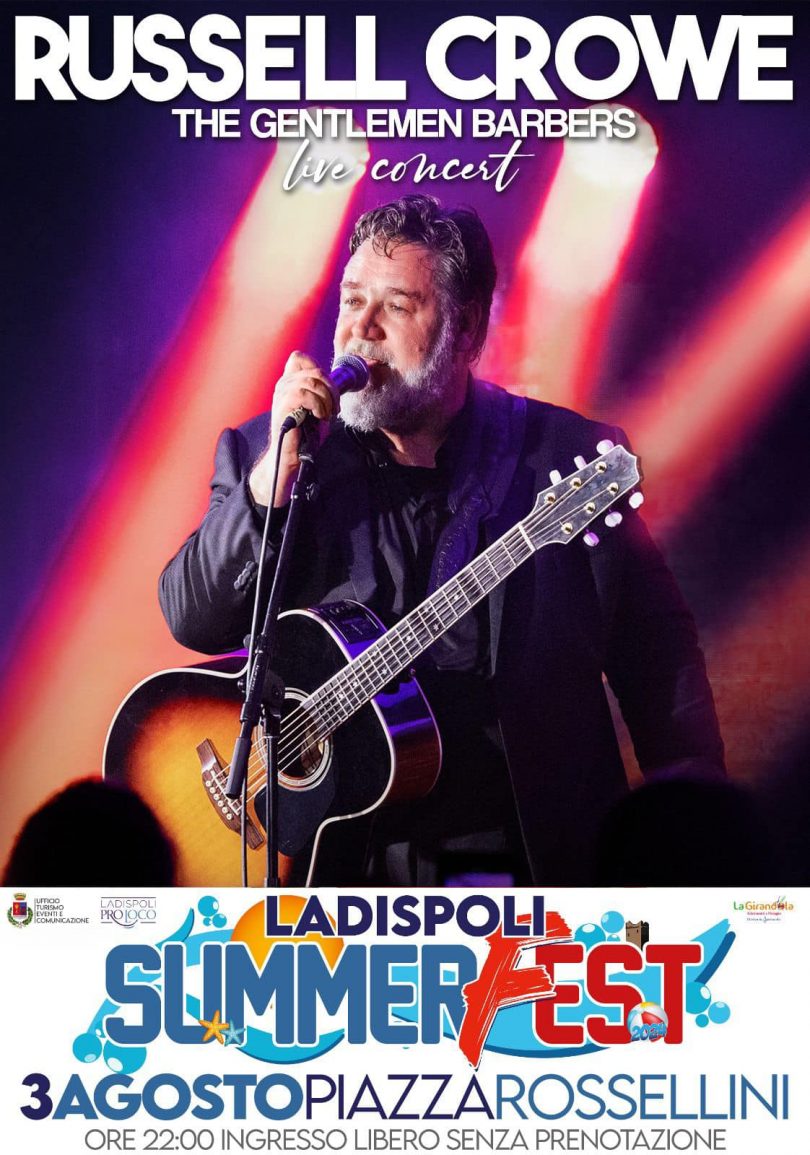 Il 3 agosto sancirà una giornata storica per Ladispoli, che ospiterà un artista di fama mondiale come Russell Crowe. L’attore neozelandese di origini italiane, Premio Oscar per la straordinaria interpretazione de “Il Gladiatore”, si esibirà con i The Gentlemen Barbers, la sua band con cui sta girando l’Europa.