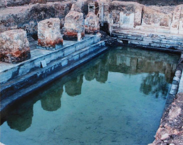 Sulle Aquae vi è anche da ricordare ciò che annotò  lo storico antico romano Tito Livio (n. 59 a.C. n. m 17 p. C. n.)  nella sua Ab Urbe Condida (una monumentale storia di Roma a partire dalla sua fondazione) “Nell’anno tra i vari prodigi ci fu quello delle acque ceriti miste a sangue”. Dopo Aureliano questo sito (esteso per circa 7 ettari !) che è molto bello, fu completamente obnubilato scomparendo dai “radar della storia” per circa 1500 anni e ciò addirittura fino al 1987 del secolo scorso. Fra coloro che le cercarono inutilmente vanno sicuramente annoverati, agli inizi del  milleseicento dopo Cristo, i due ritenutissimi geografi e storici tedeschi Philippus Cluverius (Filippo Cluverio) e Lucas Holstenius (Luca Olstenio) che “mappando” i siti e le pertinenze territoriali della Roma antica cercarono inutilmente le suddette Aquae Caeretanae che sono poste in una gran bella e molto ampia realtà ambientale scarsamente urbanizzata,posta a 300 mt. di altitudine e dominante il mare, nomata Pian della Carlotta, nella quale scorre pure, fra gli alberi e di fianco alle Aquae, anche un delizioso pulitissimo ruscello. Tutto ciò fino a giungere alla fine del 1986 quando nella zona di Pian della Carlotta, in prossimità della località del Sasso, nel territorio di Cerveteri, a seguito (dicono) di una aratura effettuata con un trattore dal proprietario del terreno fu segnalata, alla Soprintendenza Archeologica dell’Etruria Meridionale, un’ampia presenza di particolari cocci e frammenti (per l’esattezza frammenti fittili, di marmo, di vetro e numerosissime tessere policrome di mosaico che erano sparsi su una grande superficie). Una cosa questa che “accese i riflettori”alla stessa Soprintendenza la quale, all’epoca, aveva come responsabile per il litorale e la zona retrostante l’archeologa d.ssa Rita Cosentino che comprese subito che si era in presenza di una realtà molto importante ma non arrivando ancora a pensare alle famose Terme Ceretane. Iniziati i lavori di ricerca affiorarono subito alcune soglie in marmo e  proseguendo negli scavi archeologici, a cinque metri di profondità, furono rinvenuti i resti di  due grandi  vasche, quelle del calidarium e del tepidarium circondati da ben tre file di sedili in marmo, ma non solo, visto e considerato che sotto una volta brillavano dei gran bei mosaici con le loro rispettive tessere in pasta vitrea di colore blu, verde, giallo, nero e rosso a disegnare un’esplosione di fiori su campo bianco ed insieme a ciò fu rinvenuta una decisiva colonnetta votiva con su scritto: “A Giove e alle fonti delle acque ceretane”. Fra l’altro dagli scavi emersero pure un bustino muliebre somigliante ad una Faustina ed un pezzo di sedile con su una zampetta di leone ed inoltre furono scoperti, lungo le pareti, dei tubi di terracotta che recavano l’acqua calda per riscaldare gli ambienti. Una realtà, come fu scritto “di dimensioni e livello artistico decisamente eccezionali rispetto allo standard degli insediamenti noti nella zona”. Insomma il mistero delle Aquae Caeretanae scomparse per secoli (con un grande cruccio da parte degli studiosi di mezza Europa) era stato risolto con la “riemersione”, dai gangli della storia antica, del calidarium e del tepidarium,di colonne, mosaici policromi, marmi di giallo antico e di Carrara con il tutto “condito”, stando alle cronache dell’epoca, da una gran bella polla di acqua sulfurea che rendeva acre l’aria tutto intorno. Ma gli scavi dettero pure altre indicazioni a seguito del ritrovamento di tracce di legno bruciato e di vari detriti alluvionali; il segno, come dichiarò  l’archeologa d.ssa Rita Cosentino, all’epoca responsabile di Zona della Soprintendenza Archeologica dell’Etruria Meridionale : “… che furono distrutte dai Visigoti di Alarico o da una violentissima alluvione”. Ma, dopo ciò, le ricerche archeologiche si fermarono per mancanza di fondi tanto è vero che, considerando come erano normalmente strutturate le terme romane, all’appello mancano ancora (come minimo, visti i settantamila metri quadri di estensione) il frigidarium, gli spogliatoi e la palestra. Attualmente il Gruppo Archeologico del Territorio Cerite – onlus ha avuto dalla Soprintendenza Archeologica il permesso di ripulitura e lo sta facendo con la stessa équipe operativa che ha già sistemato, in maniera eccellente, l’area sepolcrale del Laghetto al Sito UNESCO della Banditaccia a Cerveteri. Zona del Laghetto che contiene le tombe etrusche più antiche di tutto il pianoro risalenti addirittura all’epoca villanoviana (IX°/VIII° secolo a.C.). Ed a proposito della fama internazionale di cui godono le Aquae Caeretanae, chi scrive ben ricorda, essendo stato ben presente, quando l’ispettore UNESCO il famoso prof. Giora Solar ( che chi scrive conobbe molto bene ed al quale consegnò ben 300 foto effettuate delle sue due ispezioni nelle quali lo accompagnò all’area archeologica etrusca di Cerveteri, quella che diverrà da lì a poco – 2 luglio 2004 – Sito UNESCO Patrimonio Mondiale dell’Umanità) nella caldissima giornata del 23 luglio 2003 dopo aver ispezionata tutta l’area archeologica del pianoro della Banditaccia (area archeologica fra le più estese al mondo) espresse, proprio alla d.ssa Cosentino, il desiderio di andare a visitare le  Aquae Caeretanae, cosa che la suddetta archeologa, con molto “tatto”, riuscì intelligentemente a “sventare” dirottando tutta la piccola delegazione sulla molto più “abbordabile” Ceri sempre molto antica e sempre di origine etrusca. Sicuramente la Cosentino ricordava il poco presentabile status strutturale degli scavi alle Aquae, visto che gli ultimi interventi risalivano a prima del 1990 e lì finirono  a causa della solita,  culturalmente “tragica”,  mancanza di fondi. Comunque rimane il fatto incontrovertibile che, ancora sepolta sotto terra, oltre alle situazioni succitate (frigidarium,  spogliatoi, p