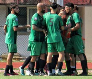 La gioia dei giocatori del Civitavecchia dopo il secondo goal di Vittorini