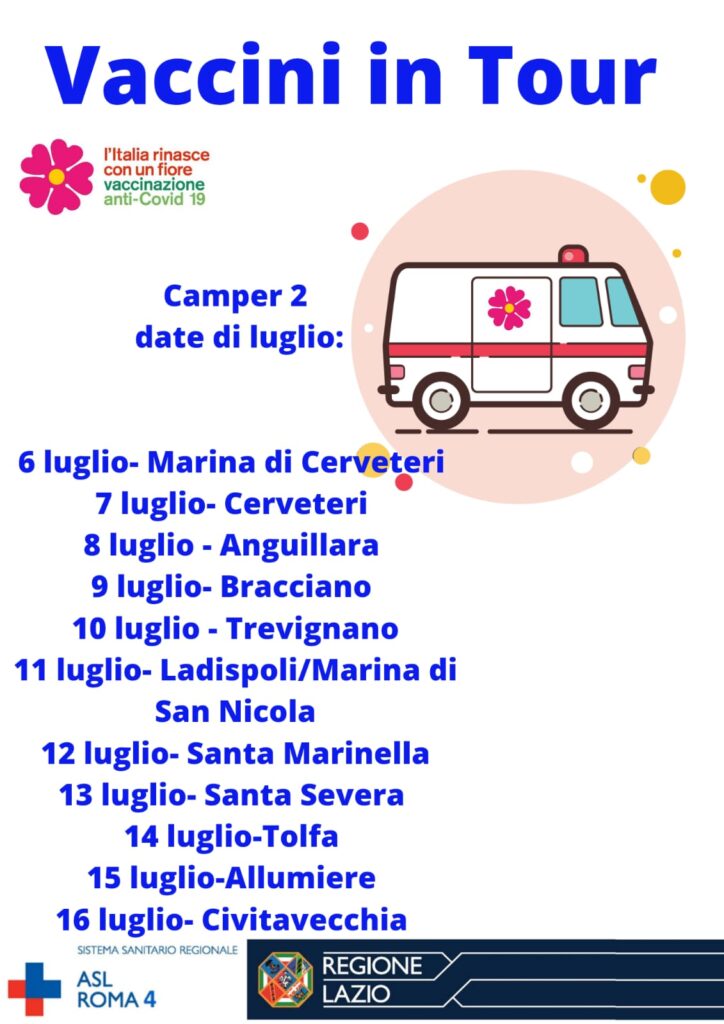 Un tour in camper per portare il vaccino in tutto il territorio della Asl Roma 4: è questa l’iniziativa dell’azienda sanitaria che prenderà il via domani. Saranno impiegati due camper per eseguire le vaccinazioni itineranti e il vaccino somministrato sarà quello della Johnson&Johnson, noto per essere l’unico che non richiede una seconda dose. Il tour si svolgerà interamente nel mese di luglio e toccherà, dal 5 al 17 del mese, più città.