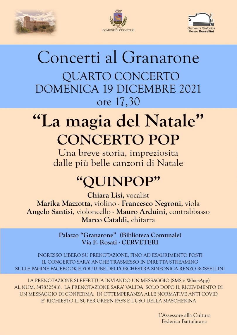 Domenica 19 dicembre alle ore 17:30 presso l’Aula Consiliare del Granarone l’Orchestra Sinfonica Renzo Rossellini porta “La magia del Natale” in musica. Il prossimo appuntamento è con il “Quinpop”, una breve storia impreziosita dalle più belle canzoni di Natale.