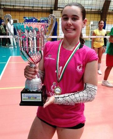 Tra le ragazze che Domenica 8 Giugno hanno vinto il Titolo di campionesse territoriali Under 13 Femminile Fipav Roma ce n’è una che pur essendo ancora molto giovane ha già al suo attivo una serie di piccoli successi, tutti premiati con altrettante medaglie, che hanno certificato nel tempo la sua soddisfazione di aver disputato una Finale Territoriale Fipav, vinta o persa che sia. Stiamo parlando di Elena Notarangelo (classe 2012) e delle sue Medaglie che nel loro insieme rappresentano per lei un vanto e testimoniano la sua dedizione a giocare qualsiasi Campionato gli venga proposto, la sua passione smisurata, una tecnica già affinata per la sua età, una ottima capacità organizzativa soprattutto in relazione alla scuola supportata anche da una ben rodata organizzazione familiare. Il tutto sostenuto da una naturale predisposizione alla talentuosità e da un temperamento, una determinazione, una caparbietà ed una voglia di vincere che soprattutto in gara condiziona positivamente le sue compagne di squadra. Elena è una giovanissima ragazza che non solo è la sintesi di tutto questo, ma che nel corso delle ultime quattro stagioni sportive ha rappresentato l’elemento di forza dei gruppi dove è stata inserita senza mai venire meno alle aspettative dei suoi tecnici e della Volley Ladispoli. Come precedentemente accennato, il suo medagliere al momento ne conta sei:
