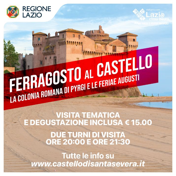Un Ferragosto tra cultura e storia al Castello di Santa Severa, spazio della Regione Lazio gestito dalla società in house LAZIOcrea d’intesa con il Mic e il Comune di Santa Marinella con il percorso di visita serale con degustazione, dedicato alla colonia romana di Pyrgi e le Feriae Augusti.