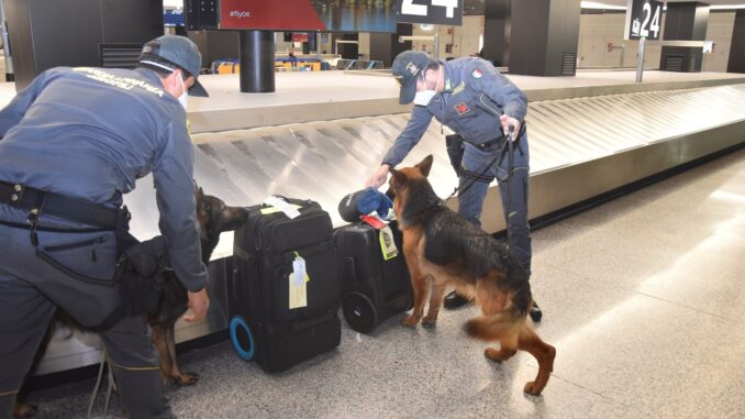Dopo aver scansionato i bagagli da stiva dei due “pellegrini”, sono stati rinvenuti 32 panetti contenenti cocaina.