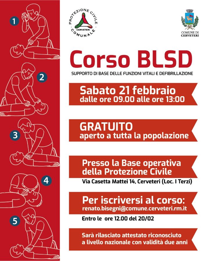 “Poche manovre che se correttamente applicate possono risultare fondamentali per salvare la vita di una persona. Nuovo appuntamento dedicato alla formazione e alla prevenzione a cura del Gruppo Comunale di Protezione Civile della nostra città, che sabato 21 febbraio sarà impegnato presso la Base operativa di Via Casetta Mattei a I Terzi con un corso BLSD completamente gratuito rivolto a tutta la popolazione”.