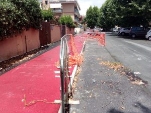 Lavori iniziati tre mesi fa, proseguiti a singhiozzo e da settimane fermi, di operai nessuna traccia da tempo. La reazione degli abitanti, già furiosi per la cancellazione di una quarantina di parcheggi, è arrivata in queste ore. Qualcuno ha iniziato a mettere le transenne sulla pista ciclabile per poter posteggiare le automobili in un quartiere dove è impossibile trovare un posto. Situazione che peggiora nei fine settimana e che rischia di esplodere a luglio ed agosto quando Ladispoli sarà invasa da migliaia di romani. Senza dimenticare che per tutta l’estate tornerà la famigerata isola pedonale nei fine settimana con la chiusura alla circolazione di viale Italia e strade limitrofe a piazza Rossellini.