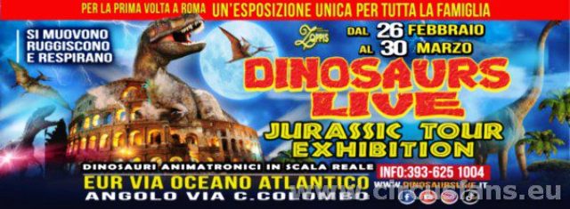 Arriva finalmente in Italia DINOSAURS LIVE Jurassic tour Exhibition un’esperienza indimenticabile, un appassionante viaggio nella storia del nostro pianeta per conoscere le specie che lo abitarono milioni di anni fa.Sarà per la prima volta a Roma Eur In via Oceano Pacifico 271  angolo Via C. Colombo dal 26 Febbraio al 30 Marzo 2025 Un folto gruppo di ricostruzioni animatroniche a grandezza naturale simuleranno il comportamento di questi animali preistorici con il fine di ricreare il mondo di questi giganti ai quali il nostro pianeta apparteneva più di 65 milioni di anni fa. Questa mostra itinerante ha visitato una decina di paesi europei (Germania, Francia, Spagna, Regno Unito, Norvegia, Polonia, Romania, Grecia …) e ora in esclusiva a Roma prima di proseguire il suo tour in Spagna. I dinosauri dell’esposizione sono frutto degli ultimi sviluppi tecnologici che ci permettono di ammirare in loro i reali movimenti di ogni specie, ma non solo si muovono, addirittura respirano! Sembrerà di stare di fronte a reali esemplari di Triceratopi, Tirannosauro Rex, Spinosauri, Amargosauri, Iguanadonti, Bracchiosauri, Diplodocus… E tante altre specie ancora! La moderna struttura che ospita i dinosauri è un vero e proprio Parco Giurassico che offre la possibilità non solo di osservare queste ricostruzioni realistiche di dinosauri in movimento, ma anche di imparare le principali caratteristiche di ogni specie che si trova lungo il percorso, grazie all’informazione disposta nei pannelli descrittivi di ogni animale. Facendo sì che l’esperienza non sia solo incredibilmente emozionante ma anche educativa. Un viaggio nel tempo adatto alle esigenze di un pubblico di ogni età. Per rendere l’esposizione più realistica e d’impatto, sono stati ricreati gli habitat naturali nei quali vissero le specie di dinosauri esposte. Le scene presenti nella mostra sono state disegnate alla base di studi scientifici sulle caratteristiche del pianeta in quell’epoca . Così da poter rivivere completamente l’atmosfera di quei tempi. La mostra comprende uno show di proiezioni 3D che permetteranno al pubblico di immergersi completamente nell’epoca della preistoria ed essere letteralmente circondati da dinosauri. Sembrerà di poter toccare con mano questi esemplari estinti ricreati con avanzate tecnologie audiovisuali. Troviamo inoltre un’area completamente interattiva dedicata principalmente ai più piccoli dove potranno divertirsi immaginando di essere dei paleontologi. Si tratta di un recinto di sabbia nel quale scopriranno repliche di ossa di dinosauri utilizzando vari strumenti messi a disposizione. Uno spazio sicuro e recintato dove i bambini potranno vivere in prima persona l’esperienza della scoperta. Ogni componente della mostra DINOSAURS LIVE è stato selezionato con estrema accuratezza da un gruppo di esperti pedagogisti, con speciale attenzione per l’interesse scientifico, espositivo ed educativo di ognuno di loro. Con il fine di far comprendere al visitatore quest’incredibile fauna, di promuovere il rispetto per la natura e la sensibilizzazione di bambini ed adulti per la cura del nostro pianeta, usando come esempio i dinosauri e le varie specie che hanno convissuto per milioni di anni in armonia con la natura prima della loro estinzione.