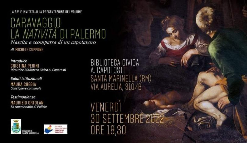 Per gli appassionati di Caravaggio segnaliamo un interessante appuntamento in programma venerdì 30 settembre alle ore 18,30 nella Biblioteca Civica “A. Capotosti” di Santa Marinella. È in programma la presentazione del libro “Caravaggio, la Natività di Palermo. Nascita e scomparsa di un capolavoro” di Michele Cuppone, che sarà presente all’evento. Un incontro nel quale si racconteranno particolari poco noti del clamoroso furto del dipinto di Caravaggio in una chiesa di Palermo e le tante illazioni che dal 1969 a oggi si sono susseguite. Ospite speciale l’ex commissario di polizia Maurizio Ortolan che con Giovanni Falcone, nel 1989, sentì il pentito Francesco Marino Mannoia parlare per la prima volta del quadro rubato. L’opera non è mai stata ritrovata.