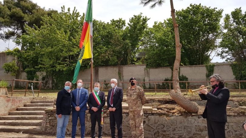Dopo la firma in Comune dell’atto di acquisizione da parte del Sindaco Bruni e del Dott. Pisciotta, in qualità di Direttore della Direzione Regionale Lazio dell’Agenzia del Demanio, alla presenza del Dott. Eugenio Chiazzolla, del Generale Fabio Giambartolomei, di Antonello De Iulio, di alcuni Consiglieri anche di minoranza, dell’ex Sindaco Lucia Dutto, dell’Arch. Antonio Piccioni, di Claudio Amoroso, di Massimo Paffi e dei parroci di Manziana e Quadroni, Don Giorgio e Don Giuseppe, si è tenuta una sobria cerimonia direttamente sul posto, organizzata nel rispetto delle disposizioni anti contagio Covid.