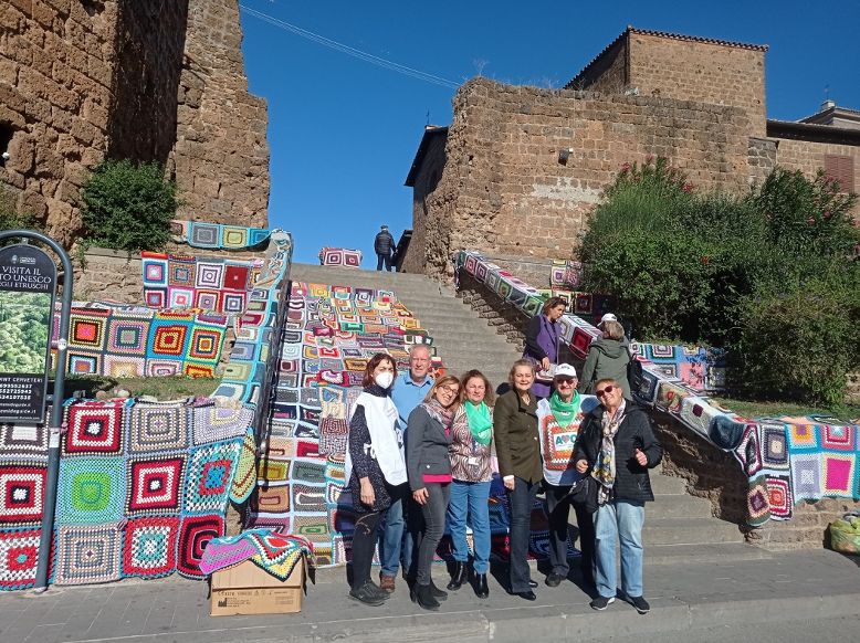 Il “Mantello per la Vita”, promosso dalla ASL Roma 4, insieme ad AVO Ladispoli, nella giornata di domenica 6 novembre ha colorato di solidarietà e speranza le scalinate di Piazza Aldo Moro a Cerveteri.Un progetto che nasce per sensibilizzare la cittadinanza sull’importanza che le cure palliative hanno in ambito sanitario, ed in particolare per raccontare l’importante lavoro di assistenza ai malati gravi e alle loro famiglie che l’Azienda Ospedaliera Locale porta avanti anche a Domicilio sui distretto 1e 2. Da novembre 2021 ad oggi, tante persone, malati, Caregiver, operatori sanitari, hanno preso in mano i ferri e l’uncinetto e grazie ad un forte spirito di squadra, delle varie associazioni del territorio, e alla condivisione dei valori del progetto, si è riusciti a creare migliaia di quadrati di lana colorati che, uniti, si sono trasformati nel mantello delle cure palliative. Molto spesso si associa il termine “palliativo” al concetto di “inutile”. La parola deriva dal latino pallium, mantello, ed evoca l’idea di protezione, caldo abbraccio non solo per chi è ammalato ma anche per chi si prende cura di lui, la famiglia. Un modo di agire che affonda le sue radici nel culto di San Martino, soldato dell’Impero Romano, che durante una ronda notturna divise il suo “pallio” con un mendicante sofferente per il freddo. Per questo il Centro di Cure Palliative “Carlo Chenis” ha voluto riprodurre questo gesto creando tanti mantelli altrettanto speciali, cuciti unendo tasselli diversi, realizzati da tutti coloro che hanno scelto di partecipare a questa iniziativa di solidarietà. “pezzettini” di mantello staccati all’occorrenza sono diventati preziose idee regalo come borse di vario tipo, copertine, federe per cuscini e cappellini. Attraverso questo progetto si è voluto contribuire a sbrogliare qualche filo per fare chiarezza sul significato delle cure palliative e sulla loro importanza.