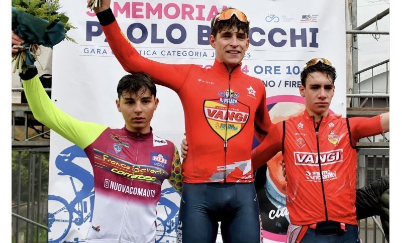 Per Bolognesi una vittoria importante, che ha regolato con disinvoltura e coraggio, regalando al presidente Andrea Campagnaro e a Fabrizio Vangi, main sponsor, una domenica sorprendente. Lo junior del Pirata ha preso la testa a 100 metri dal traguardo ed ha vinto su Sciarra e sul compagno Sgherri, quest’ultimo al terzo posto. C’è anche un settimo e un nono posto del Pirata, si tratta di Sambinello e Meccia, a riprova del bel gruppo che il diesse Berti è riuscito a comporre. Una vittoria, dunque, che ha galvanizzato il team di Sezze, che si candida per una stagione all’insegna del successo. Una settimana fa, Sambinello, aveva trionfato sempre in Toscana, regione che sembra portare fortuna ai colori grigio rossi.
