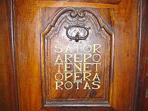 Sator è solo la prima parola di un misterioso Quadrato ed è il primo vocabolo che si incontra, scritto (in genere ma non sempre) nella parte alta di esso, andandosi ad incrociare con gli altri quattro vocaboli così da formare un gran bell’intreccio palindromico (leggibile in entrambi i sensi – ndr): Arepo, Tenet, Opera, Rotas  il cui significato globale, dopo secoli di ipotesi, risulta ancora un misterioso enigma. Si dice anche che sia una iscrizione tutta latina ma non è vero neppure questo in quanto Arepo non è una parola latina.