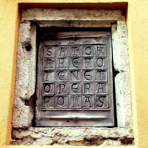 Sator è solo la prima parola di un misterioso Quadrato ed è il primo vocabolo che si incontra, scritto (in genere ma non sempre) nella parte alta di esso, andandosi ad incrociare con gli altri quattro vocaboli così da formare un gran bell’intreccio palindromico (leggibile in entrambi i sensi – ndr): Arepo, Tenet, Opera, Rotas  il cui significato globale, dopo secoli di ipotesi, risulta ancora un misterioso enigma. Si dice anche che sia una iscrizione tutta latina ma non è vero neppure questo in quanto Arepo non è una parola latina. Andando alle poche certezze vediamo, più ampiamente possibile, dove è stato ritrovato il superenigmatico Quadrato. Nell’elenco che segue (affatto esaustivo tutt’altro -ndr) balza agli occhi l’importante numero di luoghi di culto ma, nello stesso tempo, si evidenziano situazioni che con essi non hanno nulla a che fare: Rovine romane di Cirencester (l’antica Corinium) in Inghilterra, scavi di Ostia Antica, castello di Rochemaure (Rhône-Alpes), Oppède in Vaucluse, Siena sulla parete del Duomo cittadino, Certosa di Trisulti a Collepardo, Santiago di Compostela in Spagna, Altofen in Ungheria, Riva San Vitale in Svizzera. A volte le cinque parole si trovano disposte in forma radiale come a Sermoneta  nell’abbazia di Valvisciolo, oppure in forma circolare come nella Collegiata di Sant’Orso di Aosta. Molte le altre chiese medioevali italiane ove è presente la frase palindroma in forma di quadrato, radiale o circolare, e forse non  sono tutte: la Pieve di San Giovanni a Campiglia Marittima, la chiesa di San Potito ad Ascoli Satriano, la chiesa di San Pietro ad Oratorium a Capestrano, la Chiesa di San Michele ad Arcè a Pescantina, nella chiesa di  Sant’ Andrea in Primicilio ad Urbino. Fermo restando, come detto in precedenza, che i ritrovamenti del Quadrato un po’ ovunque in tutta Europa sono molto più vasti della lista suddetta gli esemplari più antichi e più celebri sono quelli rinvenuti durante gli scavi archeologici a Pompei il primo (incompleto -ndr) ritrovato, nel 1925, inciso su una colonna della casa di Paquio Proculo ed il secondo portato alla luce nel novembre del 1936 su una colonna della Palestra Grande. Quest’ultimo ha avuto grande importanza negli studi storici relativi alla frase palindroma poiché esso è completo ed arricchito da altri interessanti segni mai ritrovati altrove con la certezza che fu inciso prima dell’eruzione del 79 d.C. Dopo questo ritrovamento il Quadrato del Sator viene, a volte, anche definito come “latercolo pompeiano”. Sta di fatto che comunque con qualsiasi chiave di lettura lo si voglia interpretare (ad es. lineare o bustrofedica – termine mediato dal greco antico come a dire da sn. a dx e viceversa come si giravano i buoi nell’aratura – ndr) il significato rimane oltremodo misterioso ed, a volte, addirittura contradditorio e comunque si rimane sempre nell’ambito congetturale che coinvolge, fra l’altro, sia la letteratura latina, che termini gallici che, addirittura, realtà astronomiche quale la Costellazione del Grande Carro dando un’interpretazione che tiene conto delle varie “ipotesi” attribuibili ai singoli termini ma senza mai venire ad una vera e propri risolutiva lettura globale che dica cosa c’è veramente scritto nel Quadrato. Storicamente vi sono solo due certezze riferibili ad esso: Una è che, finora, non sono stati ritrovati e non si conoscono esemplari precedenti all’era cristiana; l’altro è che il comprensorio pompeiano, risalendo nel tempo, addirittura fino al VI°  secolo a.C., quando fu anche fondato, nonché abitato ed occupato dai Rasenna (gli Etruschi -ndr) nella loro massima espansione a sud, mentre a nord raggiunsero Mantova e dintorni. Dimenticavo di dire che anche l’ “immenso” Umberto Eco ha titolato, con grande ineguagliabile umorismo, una sua più che divertente e “sdrammatizzante” pubblicazione:  “Sator arepo eccetera” ( una sorte di straordinario  libretto di giochi linguistici uscito nel 2006 per l’editore Nottetempo nella collana Gransassi, nella quale, fra l’altro, propone addirittura la scrittura rovesciata di alcuni canti della Commedia (Divina).Una “operazione” molto culturale, globalmente divertentissima, che poteva riuscire solo ad un bravissimo semiologo (studioso di segni linguistici – ndr), grande filosofo, immenso scrittore e saggista di fama mondiale quale è stato il “Magnifico” Alessandrino (nato ad Alessandria e morto a Milano), mai lodato e letto a sufficienza, come è, fu , e sarà sempre, il Suddetto italianissimo Accademista dei Lincei, Professor Umberto Eco del quale, al solo ricordare le sue splendide “lectio magistralis”, a chi scrive, viene letteralmente la “cute anserina” (la pelle d’oca).