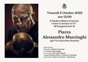 Lì, oltre alla targa per la toponomastica, sarà collocato anche un pannello biografico dedicato a Mazzinghi. A tre anni dalla morte del campione la sua città gli conferisce un tangibile segno di riconoscenza. Lui, che è stato il più importante personaggio pontederese espresso dalla storia.