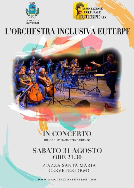 “Quello con l’Orchestra Inclusiva Euterpe è l’ultimo appuntamento dell’Estate Caerite 2024, una serata che oltre a regalarci un bel momento di musica ci offrirà spunti di riflessione e unione unici, ci dimostrerà ancora una volta come la musica e l’arte possano superare ogni barriera – ha dichiarato il Sindaco di Cerveteri Elena Gubetti – l’Orchestra Euterpe rappresenta un’eccellenza del territorio, non soltanto da un punto di vista musicale ma anche sociale. Sono tante le occasioni in cui si è esibita per cause davvero nobili e in contesti di assoluto rilievo, come ad esempio l’Auditorium “Ennio Morricone” dell’ Università di Tor Vergata di Roma, il Ministero dei Beni e delle Attività Culturali e del Turismo di Roma, il Teatro Ghione di Roma, il Teatro Quirino, il Conservatorio Santa Cecilia di Roma, l’Ospedale Pediatrico Bambino Gesù di Palidoro e il Conservatorio di Benicarlò in Spagna. A tutti i musicisti e musiciste impegnate nel concerto, l’augurio di vivere e di farci vivere una serata di note e di tante emozioni. L’ingresso sarà gratuito e consentito fino a capienza massima”.