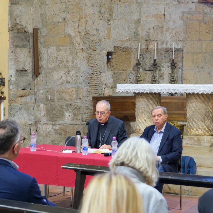 Nell’antichissima chiesa di Santa Maria a Cerveteri, sua eccellenza Gianrico Ruzza si è confrontato con pittori, scultori, scrittori e poeti del litorale, rinnovando la volontà della chiesa di sostenere attivamente ogni forma espressiva artistica. Un confronto destramente costruttivo che ha visto un interessante dibattito tra il Vescovo e gli artisti di Cerveteri e Ladispoli che hanno evidenziato progetti, proposte ed anche carenze che attanagliano il mondo della cultura in una fase storica sempre più materialistica e virtuale. Sua eccellenza Ruzza ha spronato la platea a trasmettere alle nuove generazioni un messaggio rinnovato e moderno, pur rimanendo sempre fedeli ai canoni dell’arte che può essere sacra o laica, ma deve essere sempre uno strumento capace di regalare emozioni.