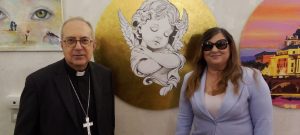 Il Vescovo Gianrico Ruzza con la delegata all’arte di Ladispoli, Felicia Caggianelli