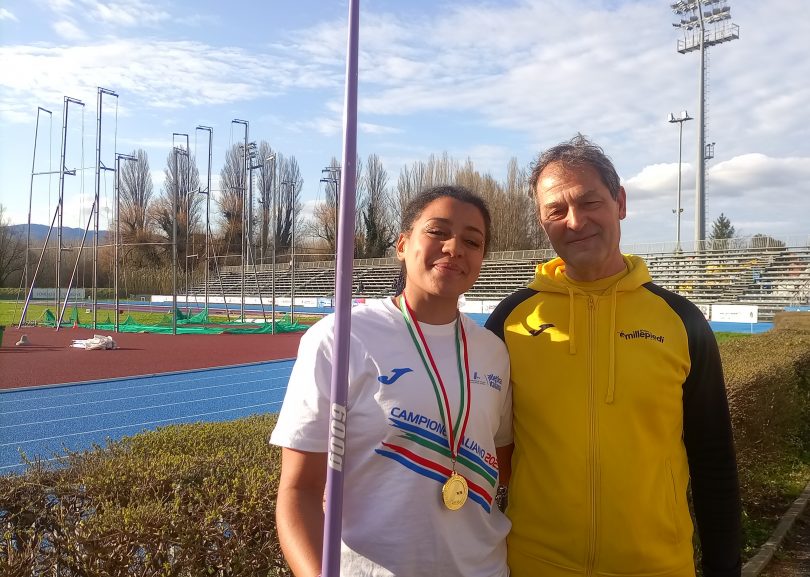 Non finisce più di regalare emozioni Jennifer Sombodey Moonou che domenica 2 marzo ha conquistato la maglia di campionessa italiana nel lancio del giavellotto, chiudendo in prima posizione al termine di una gara molto sofferta a causa del forte vento che si è scatenato sulla pedana dello Stadio Raul Guidobaldi di Rieti.La ragazza ha conquistato un titolo importante per sé e per la sua città che, va ricordato, non è dotata di alcun impianto per l’atletica e dunque neanche di una pedana per il lancio del giavellotto. Il giorno prima, ancora nel lancio del giavellotto, un’altra medaglia è arrivata dalla categoria master, grazie al bronzo conquistato nella stessa disciplina da Debora Bimbo, ai Campionati Italiani invernali Master di lanci lunghi, disputatisi ad Ancona. Le soddisfazioni per il Gruppo Millepiedi non si limitano ai lanci, poiché domenica prossima 16 marzo, sia la squadra femminile che quella maschile, prenderà parte al Campionato Italiano Assoluto di Società di Cross, grazie alla qualificazione ottenuta dopo l’ultima fase regionale tenutasi proprio la stessa domenica in cui dalla pedana dei lanci arrivava il titolo italiano. Complimenti particolari vanno alla squadra maschile che ha chiuso in seconda posizione dopo le fasi regionali, grazie alla performance dell’atleta Mohammed Zouioula che ha conquistato un prestigioso secondo posto nella fase di qualifica corsa ai Pratoni del Vivaro e al quarto posto di Yassine Metraouiottenuto a Cassino al traguardo della seconda fase regionale.