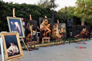 Ma i veri protagonisti sono stati ovviamente i pittori Felicia Caggianelli, Teresa Marrone, Francesca Tarantino e Stefano Martini che hanno esposto capolavori particolarmente apprezzati dal pubblico, come confermato dal fatto che ben prima dell’inizio della manifestazione, molte persone hanno seguito la fase dell’allestimento della mostra per ammirare i dipinti. Apprezzamenti per tutte le opere esposte, tra le più gettonate abbiamo notato “San Girolamo” di Felicia Caggianelli, la splendida riproduzione di “Amor omnia vincit” del maestro Stefano Martini, la “Maddalena addolorata” di Teresa Marrone e la versione del “Bacco” dell’artista Francesca Tarantino che ha spiegato alla platea come nascono le sue interpretazioni del Caravaggio. L’evento si è chiuso, dopo oltre un’ora e mezza, con l’annuncio della presidente del Rotary Club di Ladispoli e Cerveteri, Margherita Frappa, di un grande evento dedicato a Caravaggio che si svolgerà il 29 settembre, giorno della nascita del grande pittore. Sarà probabilmente il più importante evento su Caravaggio mai realizzato a Ladispoli e Cerveteri che coniugherà la beneficenza alla magnificenza delle copie museali realizzate dai bravissimi pittori che ieri hanno raccolto vasti consensi a Marina di San Nicola. Ma di questo epocale appuntamento vi informeremo nei prossimi giorni. Che aggiungere? “Sui passi di Caravaggio” ha fatto ancora una volta centro, grazie al Consorzio di Marina di San Nicola che, dopo il successo ottenuto lo scorso 23 luglio nell’anfiteatro della Villa Romana a piazzale delle Muse, ha proposto il bis che ieri pomeriggio ha riscosso l’ennesimo successo. Alla prossima, “Sui passi di Caravaggio” non si ferma…