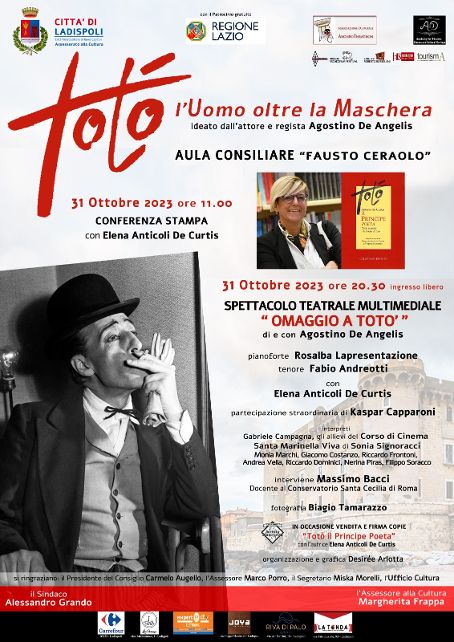 Con il titolo “Totò, l’uomo oltre la maschera”, si svolgerà uno spettacolo teatrale multimediale a partire dalle ore 20, 30, ideato dall’attore e regista Agostino De Angelis, alla presenza di Elena Anticoli De Curtis, nipote dell’indimenticabile principe della risata. Una serata in cui emozioni, ricordi, cinematografia, storia e passione per il grande schermo si misceleranno in un cocktail culturale ed artistico in grado di richiamare tanto pubblico nella sala di piazza Falcone. All’evento parteciperà il noto attore Kaspar Capparoni che da anni vive sul litorale. Prevista anche la presenza del maestro Massimo Bacci, docente del Conservatorio di Santa Cecilia a Roma. Una serata da non perdere per ricordare una figura immortale del cinema italiano come il grande Totò.