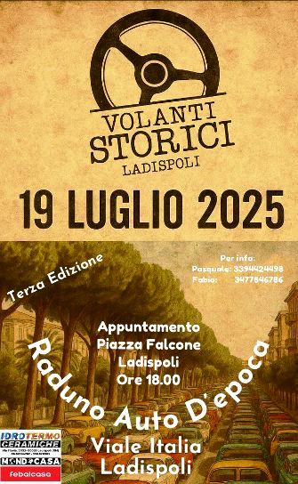 Per l’occasione, Viale Italia, cuore pulsante della città, sarà completamente pedonalizzato e si trasformerà in una vera e propria passerella a cielo aperto. I protagonisti? Splendidi esemplari di auto d’epoca che abbracciano un periodo storico che va dagli anni ‘50 agli anni ‘80, simboli di eleganza, stile e storia del motorismo italiano e internazionale. Sarà un momento unico per ammirare da vicino questi autentici gioielli, respirare l’atmosfera retrò che solo le auto d’altri tempi sanno regalare e scambiare due chiacchiere con appassionati e collezionisti. L’iniziativa, aperta a tutti, è pensata per far rivivere la magia di un’epoca che ancora oggi continua a far battere il cuore di giovani e meno giovani. Viale Italia – Ladispoli (zona pedonale per l’occasione). Sabato 19 luglio 2025, dalle ore 19:00 L’Associazione Volanti Storici Ladispoli vi aspetta per condividere la passione per i motori e celebrare la bellezza intramontabile delle auto storiche. Non mancate!