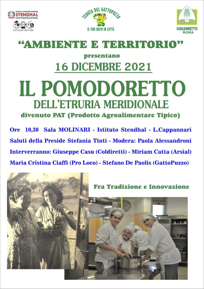 Tutta l’Etruria meridionale è rappresentata in questo evento che vede come protagonista il pomodoretto appeso, un prodotto davvero unico sia sotto l’aspetto della sostenibilità ambientale che per il suo caratteristico gusto che conserva per tutto l’inverno i sapori e profumi dell’estate mediterranea. Così nella sala Molinari dello Stendhal i Sindaci, i Consiglieri Regionali, le Università Agrarie, i produttori locali e le personalità del territorio sono chiamati a raccolta dalla Tenuta Gattopuzzo e dalla Coldiretti per una degustazione di questo prodotto entrato nell’elenco nazionale dei Prodotti Agroalimentari Tradizionali (PAT). Questo prestigioso riconoscimento è stato attribuito dal Ministero delle Politiche Agricole nel 2020 per i metodi di lavorazione, conservazione e stagionatura secondo le regole tradizionali. “Abbiamo voluto fortemente che questa manifestazione, rinviata a causa del Covid, si svolgesse nell’Istituto Stendhal, con il quale collaboriamo da tempo, in quanto crediamo nell’importanza di creare una sinergia tra scuola e territorio nel settore agroalimentare che è una delle eccellenze del nostro comprensorio. In questo abbiamo trovato il completo appoggio del Direttore della Coldiretti di Roma, il dottor Giuseppe Casu che ci segue da vicino in tutte le nostre iniziative.” Ha affermato Stefano De Paolis della Tenuta Gattopuzzo, animatore della manifestazione. “Siamo sempre molto attenti alle produzioni del territorio – spiega il direttore di Coldiretti Roma, Giuseppe Casu – che legano tradizione e innovazione, come in questo caso. Prodotti che rappresentano un volano per l’economia e la possibilità di attrarre un turismo di prossimità, sempre più attento alle ricchezze storiche e alla prelibatezza dei nostri piatti, realizzati con cibi genuini e a chilometro zero. Prodotti di eccellenza che consentono di conservare nel tempo la cultura dei luoghi che li producono”. La Dirigente Scolastica professoressa Stefania Tinti ha espresso la sua soddisfazione “Sono anni che collaboriamo con tutte le istituzioni, i produttori le Università Agrarie per valorizzare le specialità, nella convinzione che queste esperienze formative possano permettere ai nostri studenti di crescere nella consapevolezza di appartenere a un territorio di conoscerne le specificità, di essere protagonisti e propositivi per il futuro”.