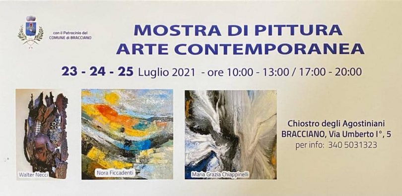 Un interessante appuntamento con l’arte è in programma a Bracciano dal 23 al 25 luglio. Nella suggestiva cornice del Chiostro degli Agostiniani, gli artisti Maria Grazia Chiappinelli, Nora Ficcadenti e Walter Necci esporranno loro splendide opere. Una mostra di arte contemporanea che vi consigliamo di andare a visitare a Bracciano.