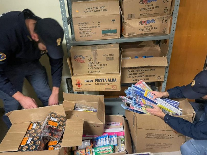 I poliziotti, all’interno del negozio, in un soppalco e in un magazzino interrato privo di ogni norma di sicurezza o aereazione, hanno rinvenuto diversi scatoloni contenenti materiale pirotecnico di cui è vietata la vendita, poiché i soggetti non avevano le necessarie autorizzazioni, inoltre, i prodotti avevano sull’etichetta scritte in lingua straniera, di sospetta provenienza, ed altri erano scaduti.