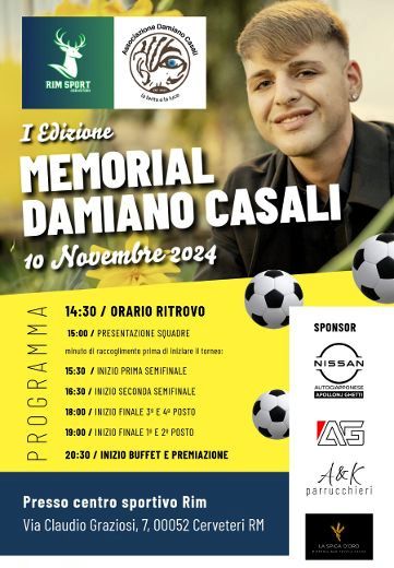 Sarà una domenica dedicata a Damiano, un appuntamento organizzato dalla sua famiglia e dai suoi amici che, ad un anno dalla scomparsa del giovane cerveterano, hanno deciso di scendere in campo per condividere e ricordare. Dalle 14:30 di domenica 10 novembre, presso il Centro Sportivo RIM a Cerveteri, si svolgerà un vero e proprio torneo di calcio a 8 che si trasformerà in uno spazio di memoria collettiva e riflessione, ma anche di divertimento perché, in fondo, questo è ciò che meglio può rendere omaggio a Damiano. Il quadrangolare avrà inizio alle ore 15:30 e terminerà alle 20. Dopo la fase di gioco, i presenti potranno assistere alle premiazioni e mangiare insieme. “Siamo contenti di aver ricevuto il supporto di tante persone” ha dichiarato la famiglia di Damiano. “Vorremmo ringraziare tutti gli sponsor che hanno deciso di partecipare all’evento e che ci stanno aiutando nelle nostre attività. È importante che tutta la comunità sostenga quello che stiamo portando avanti. Un grande grazie va anche a Maura e Ilenia Rinaldi che ci hanno accolto nella loro casa e che ci sono state vicine da subito”. “Io e Maura non conoscevamo personalmente Damiano” ha spiegato Ilenia Rinaldi, presidente del centro sportivo. “Però, lavorando a stretto contatto con i giovani, conosciamo ragazzi e ragazze a cui era molto legato. Ci siamo subito dedicate alla causa perché ci sembra veramente il minimo per la nostra città e, più in generale, per i giovani di oggi. Abbiamo deciso di dedicare le nostre giornate allo sport e proprio lo sport è veicolo di valori che condividiamo a pieno: socialità, aggregazione, dedizione, supporto reciproco. Per questo, abbiamo deciso di aiutare come possibile ed è un vero onore ospitare questo Memorial. Abbiamo conosciuto i fratelli di Damiano e vogliamo continuare a lavorare insieme, sostenendo l’associazione e permettendole di portare avanti la propria missione”.