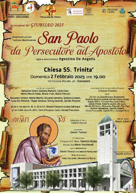 La performance è voluta dal Parroco della SS. Trinità, Don Mario Vecchierelli, dopo il pellegrinaggio diocesano avvenuto lo scorso 18 gennaio alla Basilica di San Paolo fuori le Mura con il Vescovo S.E. Mons. Gianrico Ruzza e dopo la data della Conversione di San Paolo Apostolo del 25 gennaio, per dare continuità ad un percorso di arricchimento religioso già intrapreso con il regista a fine dell’anno scorso. La scelta di intraprendere il percorso culturale religioso proposto dal regista si colloca soprattutto in occasione del Giubileo 2025 dedicato alla misericordia, tema che Papa Francesco ha più volte sottolineato nel corso del suo pontificato, dove la misericordia, è intesa come la capacità di perdonare, di accogliere l’altro, di fare spazio alla comprensione e compassione, un valore che risuona profondamente nel cuore del messaggio cristiano. L’evento giubilare rappresenta, così, un’occasione unica di dialogo, di crescita collettiva e di celebrazione della fede, ma anche di valorizzazione del patrimonio culturale che accompagna e arricchisce l’esperienza religiosa, trasformandolo in un momento di grande significato culturale per l’intera comunità globale.La performance religiosa tratterà i tre periodi più importanti del Santo: “la Persecuzione”, la “Conversione” e l’”Amore verso Gesù e il prossimo”. Saulo originario di Tarso, da giovane fu inviato a Gerusalemme, dove seguì le lezioni di Gamaliele, il maestro più famoso e saggio del mondo ebraico dell’epoca. A Gerusalemme il giovane ebbe modo di conoscere i cristiani, considerati come una setta pericolosa. Sulla strada per Damasco il Signore si rivelò a Paolo. L’episodio, noto come “La conversione di San Paolo”, rappresentò l’inizio all’opera di evangelizzazione di Paolo.