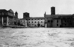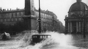 E fu proprio nel millecinquecento che si ebbero cinque piene assolutamente eccezionali di cui quattro superarono i diciotto metri. Con quella che investì Roma dal 23 al 25 dicembre 1598 che sfiorò addirittura i 20 metri! (19,56 – la più grande mai verificatasi) con 4.000 metri cubi al secondo di portata! all’Idrometro di Ripetta come a dire nel cuore della città. Si trattò di un evento terribile che causò circa 4.000 morti (con una popolazione che si aggirava solo intorno alle 100.000 anime) fra quelli morti affogati e quelli che morirono successivamente a causa delle malattie ingenerate dallo stagnare delle acque e da quanto rigurgitato dall’insufficiente e scadente sistema fognario cittadino e con centinaia di cadaveri che furono gettati nelle fosse comuni e ricoperti di calce allo scopo di prevenire, per quanto possibile, le epidemie. Vi è anche da dire che in occasione di questa tremenda alluvione le acque del Tevere raggiunsero fra le vie cittadine anche punte di 5 metri d’altezza! andando pure a coprire le colonne del Pantheon che è il luogo di Roma più basso rispetto al livello del mare ( 6 metri sotto). E come se ciò non bastasse solo 15 giorni dopo, il 10 gennaio 1599, il fiume uscì di nuovo dagli argini andando ad infierire ulteriormente su una città ancora piegata in due dalla tragedia di pochi giorni prima.
