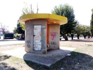 Fu costruito quando ancora non esisteva l’euro. Con l’obiettivo di essere un bagno pubblico, con annessa doccia, a disposizione dei villeggianti durante l’estate.