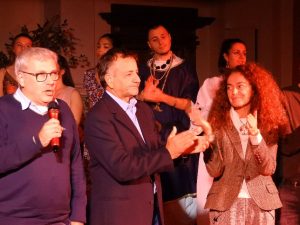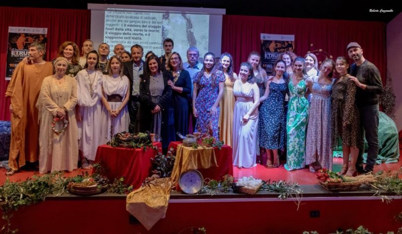 Il numeroso pubblico ha potuto conoscere e apprezzare la civiltà etrusca, grazie alla relazione storico archeologica dell’etruscologa e Direttrice del Museo Civico “I. Falchi” di Vetulonia, Simona Rafanelli, che in maniera brillante lo ha portato nei misteri del mondo etrusco, raccontando attraverso le immagini, reperti e spaccati della vita quotidiana e del ruolo della donna etrusca nella società, intervallati da diversi momenti recitati con lo stesso De Angelis e scenici sul banchetto degli attori delle Compagnie Teatrali Monzesi, la danza a cura di Matteo Capizzi della Danzart Academy e l’accompagnamento musicale dell’Associazione Mousiké. Presenti e soddisfatti dell’originalità culturale dell’iniziativa, gli amministratori dei due Comuni, per il Comune di Muggiò il Sindaco Maria Fiorito e per quello di Monza l’Assessora Arianna Bettin con i consiglieri Ilaria Guffanti e Massimiliano Longo. Gli eventi sono stati patrocinati da: Provincia di Monza e Brianza, Fondazione Monza e Brianza, Uilt, Thuja Lab, Academy for Theater and Cultural Heritage. Un format riuscito brillantemente quello di legare l’arte teatrale con il mondo storico scientifico, quello ideato da De Angelis, che la stessa archeologa Rafanelli ha accolto favorevolmente per dare continuità anche in altre città sulla divulgazione degli Etruschi.