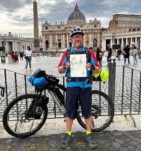 Domenica scorsa, Riccardo Macii, conosciuto a Civitavecchia per essere il presidente degli Sbroccati di enduro bike, ha concluso il suo viaggio da Reims a Roma, timbrando la credenziale per la tappa finale alla Basilica di San Pietro e ritirando il Testimonium. In 15 giorni, ha percorso circa 1700 km in bici lungo la Via Francigena, superando le sfide delle Alpi e degli Appennini, tra crescita personale e avventure straordinarie. E’ anche l’occasione per ascoltare le parole di Macii ed il racconto di un viaggio che non capita di fare tutti i giorni.