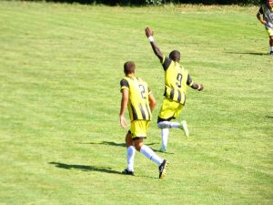L’esultanza di Cisse per il goal che ha regalato la vittoria alla Polisportiva Cimini