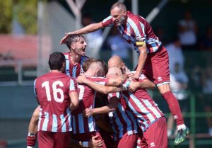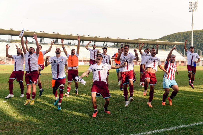 L’esultanza dei giocatori del Rieti dopo la vittoria in Coppa Italia