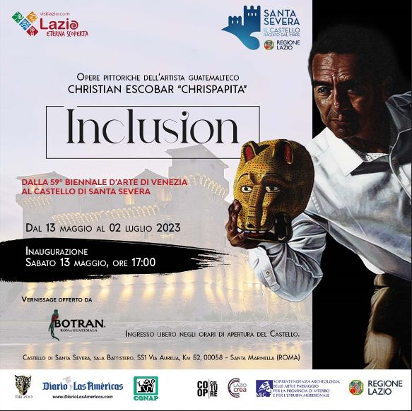 Da sabato 13 maggio, fino a domenica 2 luglio, la sala Battistero del Castello di Santa Severa, spazio della Regione Lazio gestito da LAZIOcrea in collaborazione con il Comune di Santa Marinella, ospita una mostra d’arte di rilievo internazionale: “Inclusion”, opere pittoriche dell’artista guatemalteco Christian Escobar.