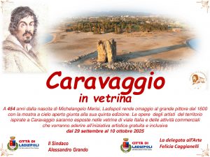 Torna, per il quinto anno consecutivo, l’evento “Caravaggio in vetrina”, rassegna che trasformerà viale Italia e le strade del centro in un’esposizione che vuole celebrare i 454 anni dalla nascita di Michelangelo Merisi. La manifestazione inaugurerà il programma autunnale delle iniziative artistiche e culturali varate dall’amministrazione comunale di Ladispoli dopo un cartellone estivo che ha richiamato decine di migliaia di persone. Da fine mese passeggiare nel centro cittadino permetterà a residenti e turisti di ammirare copie museali dei capolavori del pittore lombardo, compresi dipinti andati distrutti durante la guerra. La quinta edizione di “Caravaggio in vetrina” sarà presentata ufficialmente sabato 27 settembre nel corso di una conferenza presso la sala dell’oratorio delle Salesiane in via Trieste alle ore 16,30.