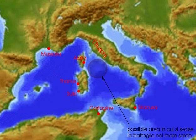 Quando avvenne la prima vera grande battaglia navale della storia quella del mare Sardo siamo nel 540 a.C. (quella di Salamina si svolse nel 480 a.C. – è noto che fino alla nascita di Cristo gli anni sono computati in decrescenza – ndr ), i Rasenna ( gli Etruschi), in particolare quelli di Caisra (Cerveteri in “etrusco”), erano, già da alcuni anni, in una ottima simmachia (alleanza di tipo militare – ndr) con i Punici nella loro espressione più potente: Cartagine. Ciò sicuramente più che facilitato dal fatto che a Cerveteri, in particolare nella sua civis portualis emporica di Pyrgi ove, già in quell’epoca e da qualche decennio, risiedeva una nutrita colonia fenicia (come attestato da ampie testimonianze storico-archeologiche) di marinai e commercianti che nel porto di Pyrgi, grazie alla forte amicizia ed alleanza con gli agyllei (Agylla era il nome che i greci avevano dato a Caisra) avevano stabilito una loro base nautica. È fondamentale ricordare come furono i Fenici a fondare la ricca e potente Cartago (all’epoca degli eventi dominatrice incontrastata del Mediterraneo) e quindi si trattava di uno stesso popolo e soprattutto di un’unica stirpe per cui ecco gli strettissimi legami socio-politici e commerciali di Cerveteri con Cartagine. Per comprendere meglio come si giunse alla grande battaglia navale del Mare Sardonio (Sardo) (detta anche impropriamente vedremo il perché – ndr di Alalia), è determinante focalizzare chi e perché si scontrò ferocemente in mare impegnando, globalmente, ben 180 navi! Abbiamo detto che da una parte erano schierati, in strettissima alleanza, gli etruschi ed i fenici di Cerveteri che insieme ai cartaginesi misero in acqua 120 navi, la metà partite da Pyrgi e le altre 60 invece salpate dalle basi nautiche che Cartagine possedeva nel sud della Sardegna, mentre dall’altra i loro avversari, che erano i greci focesi stanziatisi in Corsica ad Alalia (nomata poi,ed ancora oggi così si chiama, Aleria dagli antichi romani) schierarono “solo” 60 navi che però erano tutte delle veloci (dalle linee d’acqua estremamente filanti con fondo semipiatto, dalla velatura che gli consentiva di stringere al massimo il vento quasi in andatura di bolina come si direbbe oggi, dalla timoneria leggera e,soprattutto, munite a prua di speroni lignei) manovrabilissime pentecontere che così si chiamavano perché oltre che delle vele si avvalevano anche di 50 rematori, quindi navi che esprimevano ulteriore velocità e maggiore manovrabilità (il nome di pentecontere viene dal greco ove penteconta vuol dire cinquanta – ndr). Per essere precisi va detto che, sia da una parte che dall’altra, in quei tempi veniva normalmente esercitata la “nobile arte della pirateria” (uno dei motivi principali dello scontro). Inizialmente, e per vari anni, i rapporti con i greci di Focea stanziatisi al Alalia (già preesistente come un “piccolo emporio”) ed i pyrgensi furono sufficientemente tranquilli anche perché i suddetti greci si erano ivi rifugiati per sfuggire ai persiani di Ciro il Grande e nella loro veste di profughi non si erano “mossi” più di tanto andando a disturbare i “dirimpettai” (non dimentichiamo che la Corsica è di fronte alla costa etrusca) tanto è vero che, precedentemente, gli era stato permesso di radicarsi anche a Massalia (Marsiglia) nel 600 a.C. dandogli molto impulso, nonostante gli etruschi con i loro alleati fenici già, da tempo, commerciassero e sbarcassero da quelle parti. Ma fu proprio per la loro sempre maggiore espansione commerciale, per il loro interferire pesantemente nelle rotte altrui e soprattutto per le sempre maggiori azioni piratesche (la “nobile arte” della pirateria era esercitata da entrambe le marinerie) contro gli etruschi ed i loro alleati (popoli che finora erano stati i dominus dell’alto tirreno e del mediterraneo occidentale) che i focesi di Alalia finirono nel “mirino” degli etruschi e dei punici fino a giungere alla suddetta dirimente battaglia navale. Nell’autunno le 60 navi di Pyrgi dopo essere salpate effettuarono, probabilmente per non essere avvistate troppo presto, una rotta non rettilinea passando invece fra Giannutri ed il Giglio e sfiorando Montecristo per presentarsi poi all’improvviso di fronte ad Alalia ma senza attaccare la flotta nemica (che si armò subito per inseguirli) continuando invece la rotta costiera verso il sud della stessa Corsica fino a giungere alle isole Cerbicales (situate a soli tre/quattro km. di fronte a Porto Vecchio) fra le quali, raggiunti dagli inseguenti focesi, attaccarono battaglia, ma non da soli, in quanto a dargli manforte erano arrivate anche le 60 navi cartaginesi (Cartagine possedeva già delle basi navali nel sud della Sardegna e da lì provennero le sue navi). Essendo in presenza di marinerie molto esperte ed agguerrite (che già avevano affrontato, con successo, l’oceano Atlantico) si può supporre che i ceriti ed i punici applicarono una tattica navale studiata a tavolino: limitare la manovrabilità delle pentecontere all’interno delle Cerbicales e con i cartaginesi già ivi pronti e in agguato fra di esse. I risultati di questa prima battaglia navale documentata della storia furono che i focesi persero 40 navi ed ebbero le altre 20 danneggiate e senza più i rostri (furono i primi ad usare dei rostri lignei a prua), perdendo inoltre ben 2.400 uomini fra morti e prigionieri; a seguito di ciò i greci focesi rientrarono subito ad Alalia ed imbarcate le famiglie e gli averi sui “legni” superstiti fuggirono precipitosamente verso la Magna Grecia. La maggior parte dei prigionieri toccò in sorte ai ceriti che però poi, giunti in terraferma, li uccisero lapidandoli (nella zona del vallone di Montetosto – ndr) e passandoli a fil di spada incorrendo nelle ire del dio Apollo a cui erano devoti i Greci focesi, con quello che ne conseguì (ora possiamo affermare “sanitariamente” parlando) per armenti, mandrie e persone .E 