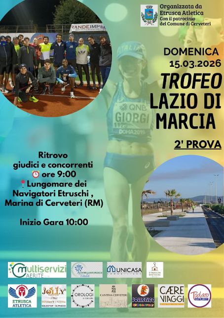 Domenica 15 marzo l’atletica “si prende” il Lungomare dei Navigatori Etruschi a Campo di Mare. Prenderà infatti il via alle ore 10:00 la seconda prova del “Trofeo Lazio di Marcia”, organizzato dall’Etrusca Atletica e patrocinato dall’Assessorato allo Sport del Comune di Cerveteri. Il ritrovo per giudici e concorrenti è fissato alle ore 09:00.“Loredana Ricci e l’Etrusca Atletica rappresentano una vera e propria istituzione nel mondo dello sport della nostra città – ha dichiarato Manuele Parroccini, Assessore allo Sport del Comune di Cerveteri – il lavoro che quotidianamente svolgono sulla pista di atletica è confermato anche dai sempre brillanti risultati che i suoi atleti riportano in tantissime competizioni non soltanto locali, ma in molti casi anche nazionali, europei e mondiali. L’iniziativa in programma domenica 15 marzo sarà una nuova occasione per praticare sport, per stare insieme, tra l’altro davvero a pochi passi dal mare e dalla spiaggia e per far conoscere anche a chi viene da fuori Cerveteri il nostro territorio e la nostra città. Non mi rimane altro dunque che complimentarmi con Loredana e fare un caloroso in bocca al lupo a tutti i partecipanti”.